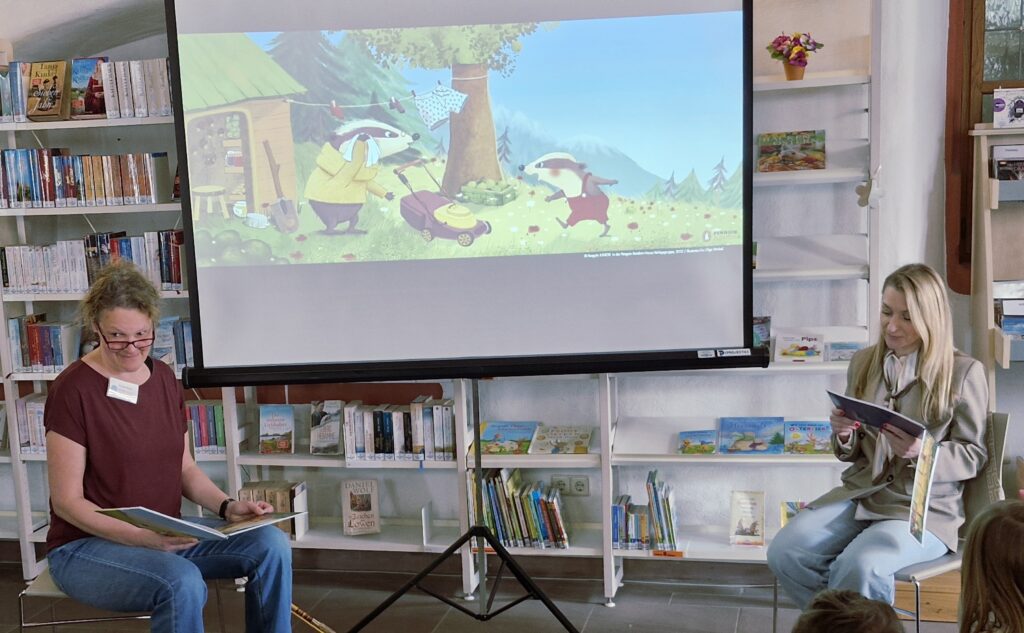 Es ging um die Geschichte „Kleiner Dachs & großer Dachs – Der riesengroße Streit“ von Annette Herzog und Olga Strobel, toll gelesen im Wechsel von Deutsch und Ukrainisch durch Frauke Blum vom Förderverein sowie Ohla Rostikova. Gebannt und aufmerksam verfolgten die Zuhörer die Geschichte und fieberten dem Happy End entgegen.